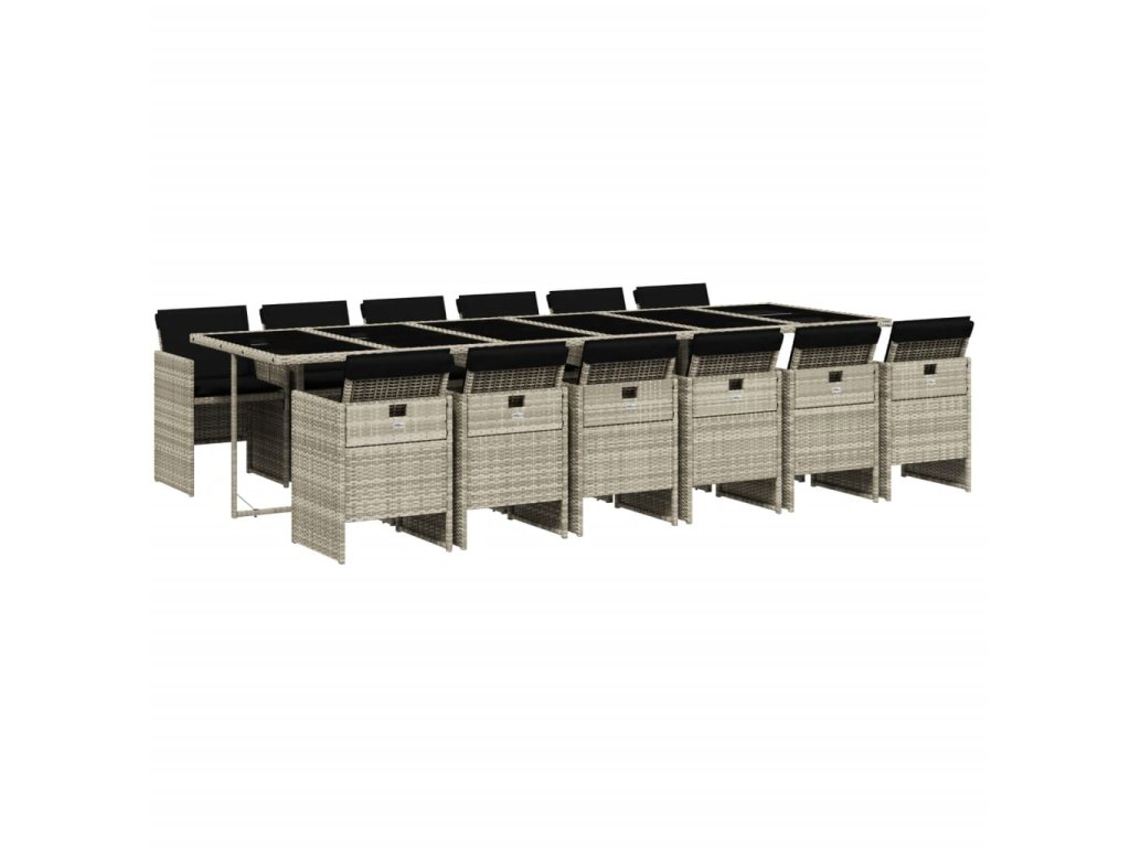 13dílný zahradní jídelní set s poduškami světle šedý polyratan 3210587