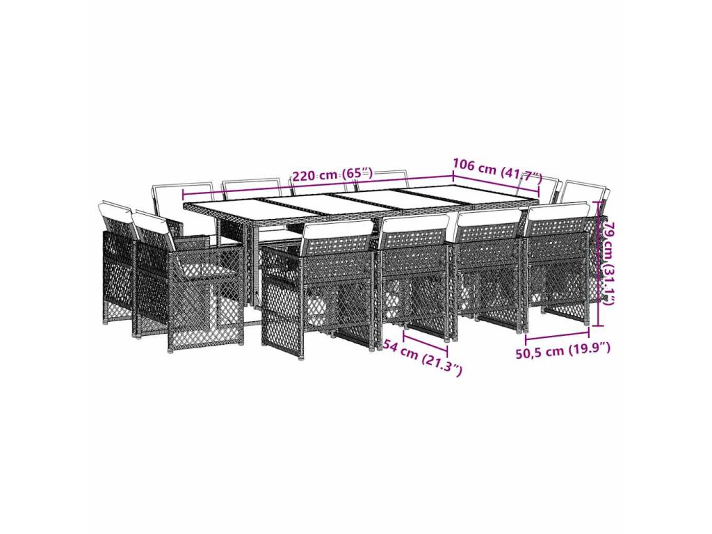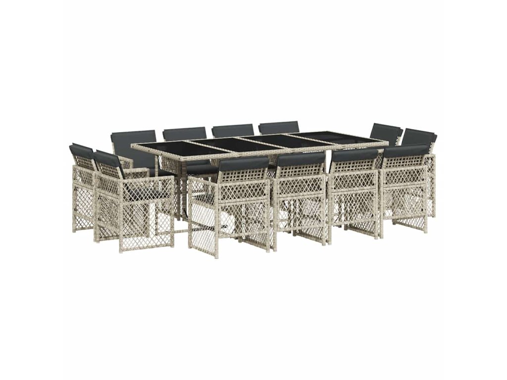13dílný zahradní jídelní set s poduškami světle šedý polyratan 3210863