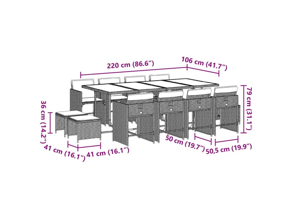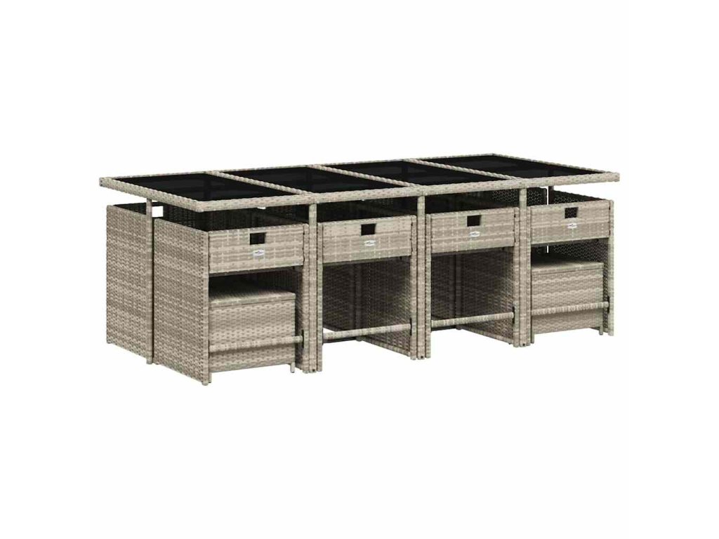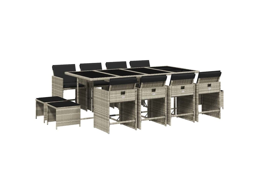 13dílný zahradní jídelní set s poduškami světle šedý polyratan 3211163