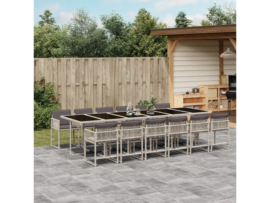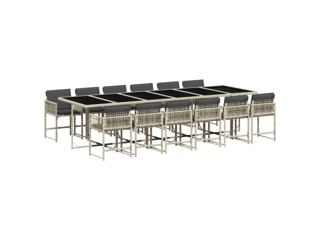 13dílný zahradní jídelní set s poduškami světle šedý polyratan 3211487
