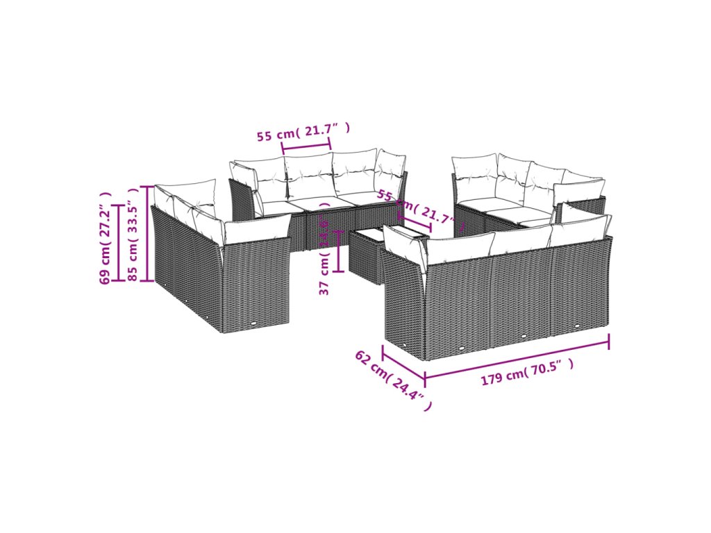 13dílný zahradní sedací souprava s poduškami černý polyratan 3217335