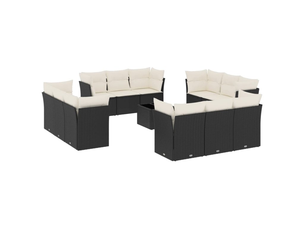 13dílný zahradní sedací souprava s poduškami černý polyratan 3217336