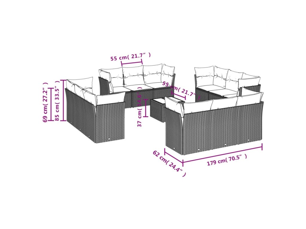 Tato zahradní sedací souprava je dokonalým doplňkem vaší zahrady, terasy nebo dvorku a poskytne vám pohodlné a příjemné místo, kde si můžete povídat s rodinou a přáteli nebo jen tak odpočívat a užívat si pobyt venku.