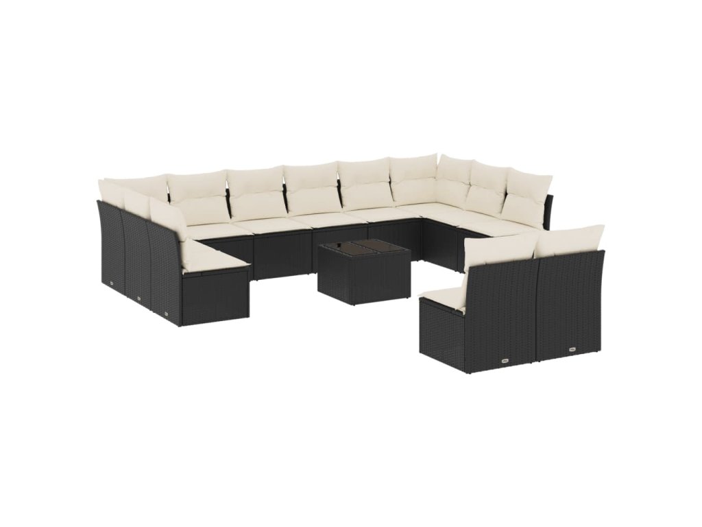 13dílný zahradní sedací souprava s poduškami černý polyratan 3218376
