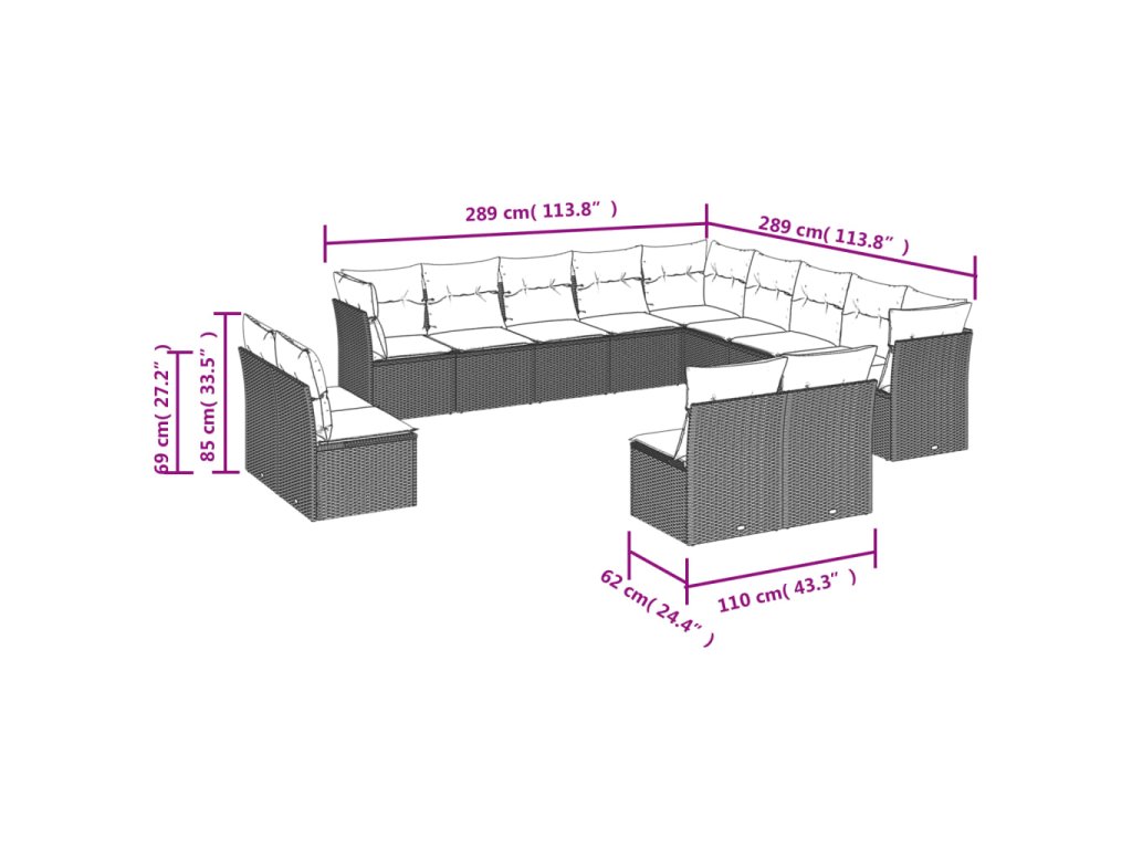 13dílný zahradní sedací souprava s poduškami černý polyratan 3218485