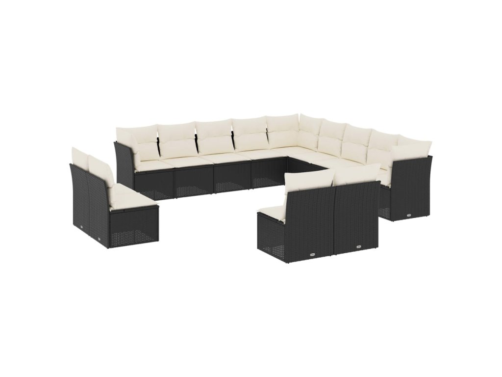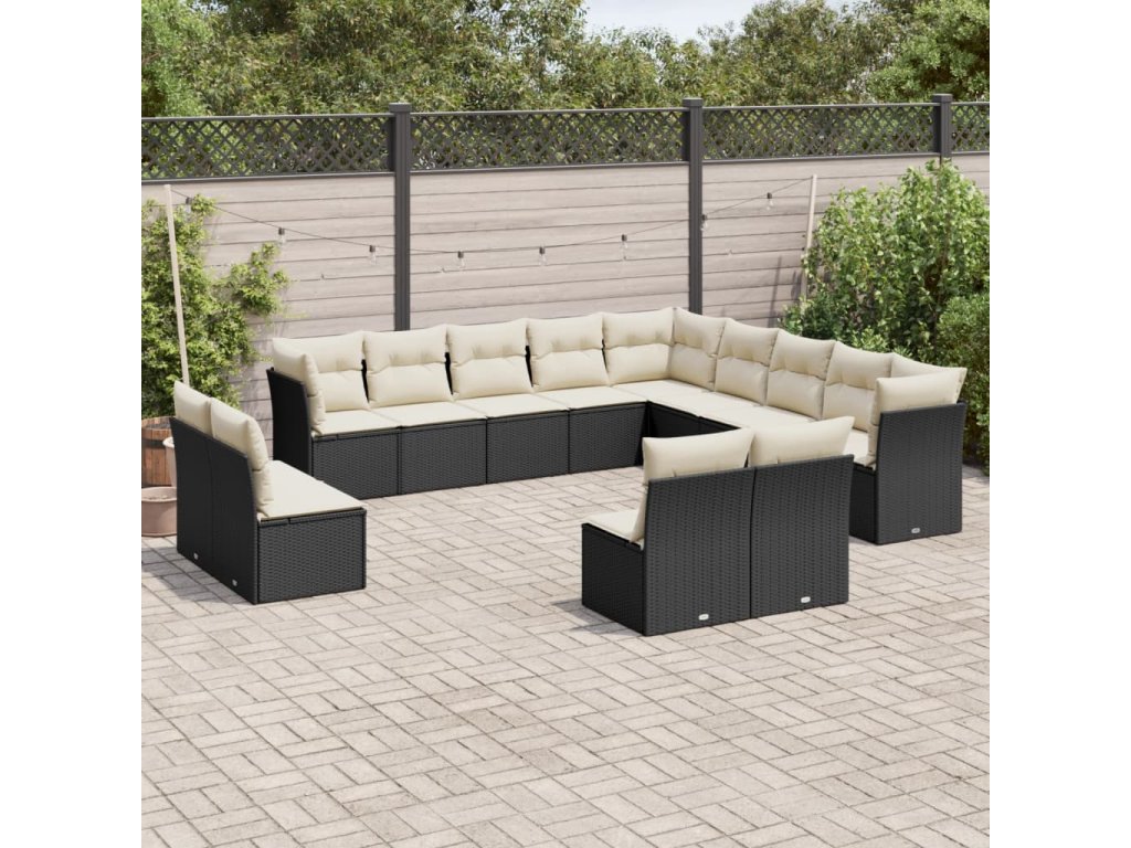 13dílný zahradní sedací souprava s poduškami černý polyratan 3218486