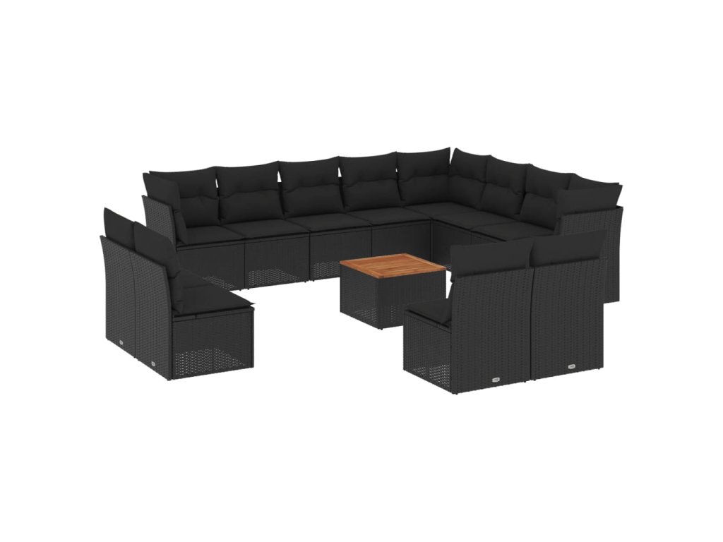 13dílný zahradní sedací souprava s poduškami černý polyratan 3223927