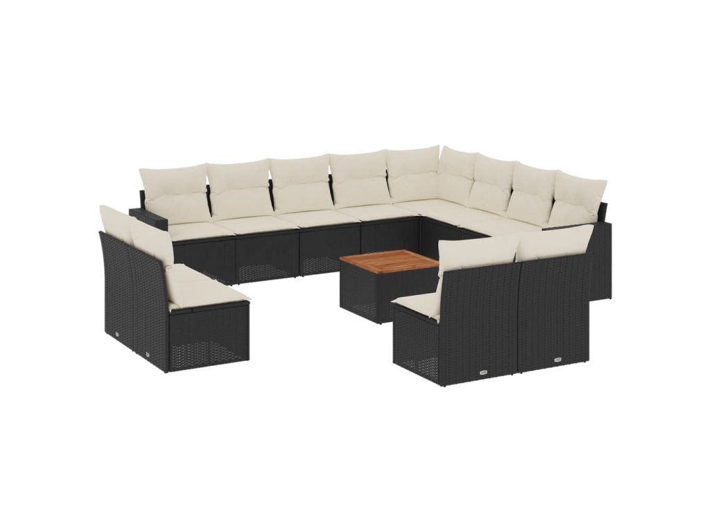 13dílný zahradní sedací souprava s poduškami černý polyratan 3224369