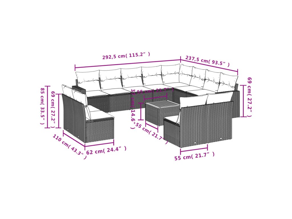 Tato zahradní sedací souprava je dokonalým doplňkem vaší zahrady, terasy nebo dvorku a poskytne vám pohodlné a příjemné místo, kde si můžete povídat s rodinou a přáteli nebo jen tak odpočívat a užívat si pobyt venku.