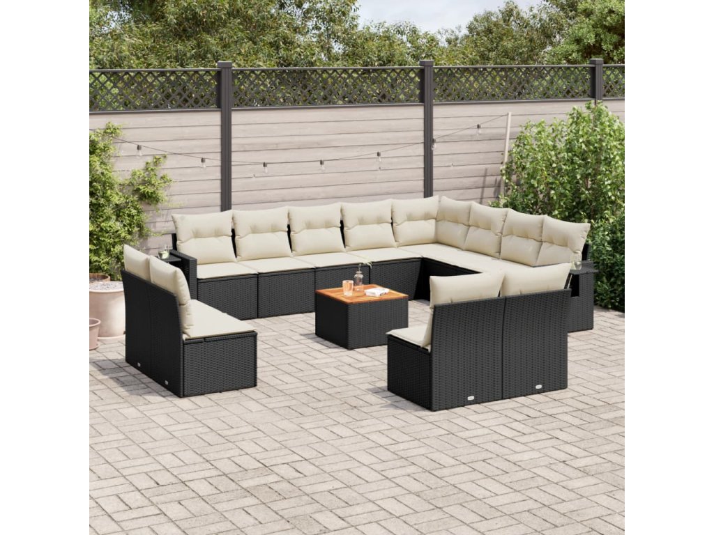 13dílný zahradní sedací souprava s poduškami černý polyratan 3224810