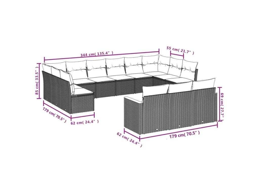13dílný zahradní sedací souprava s poduškami černý polyratan 3226455