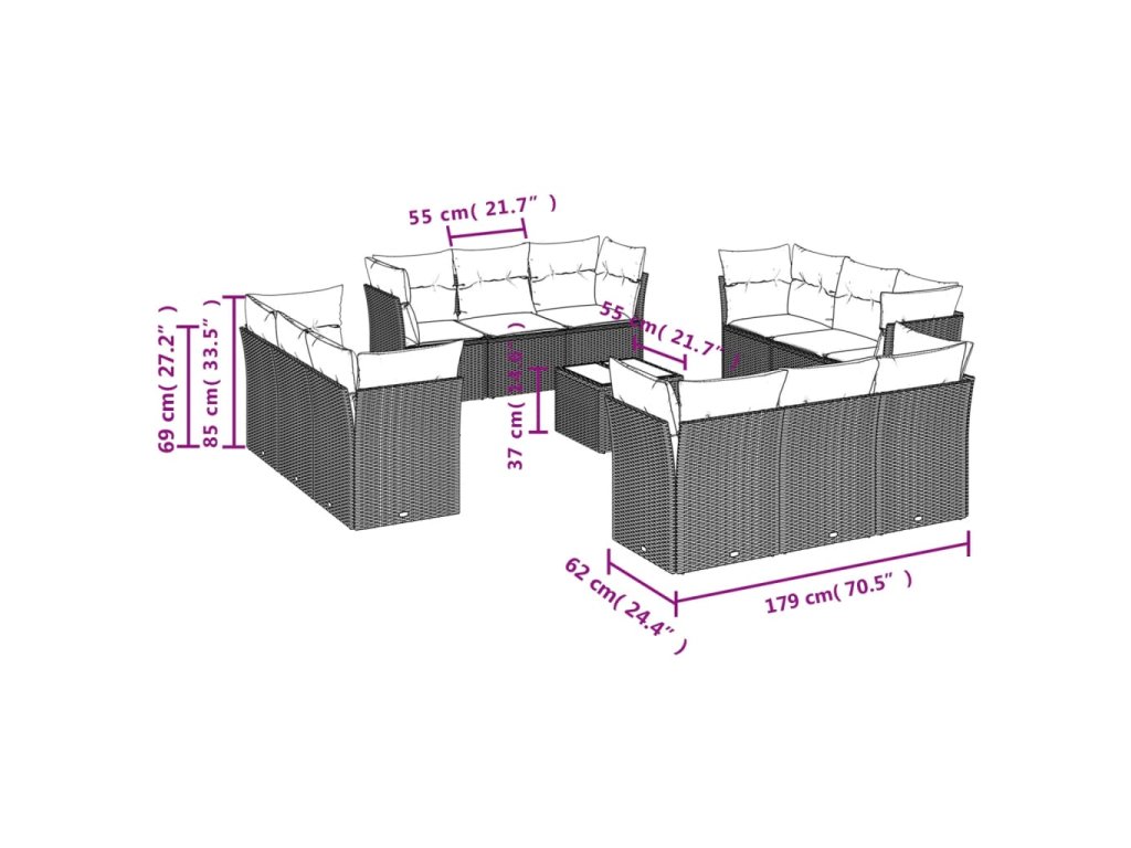 13dílný zahradní sedací souprava s poduškami černý polyratan 3249174