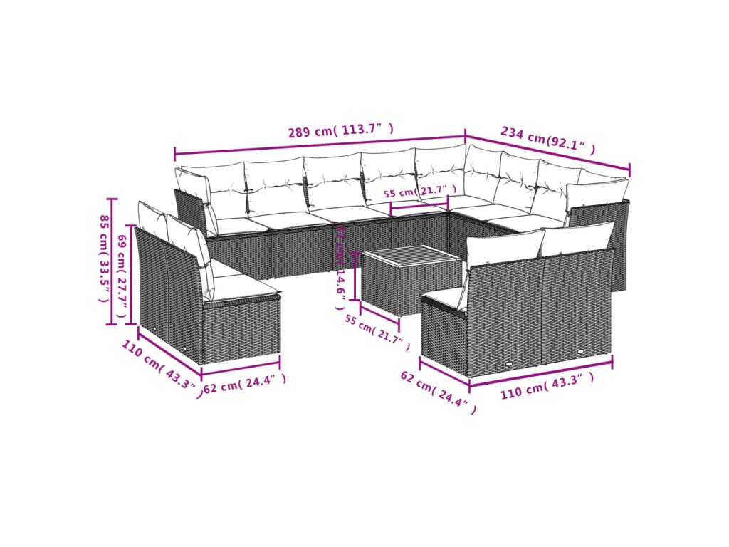 13dílný zahradní sedací souprava s poduškami černý polyratan 3256258