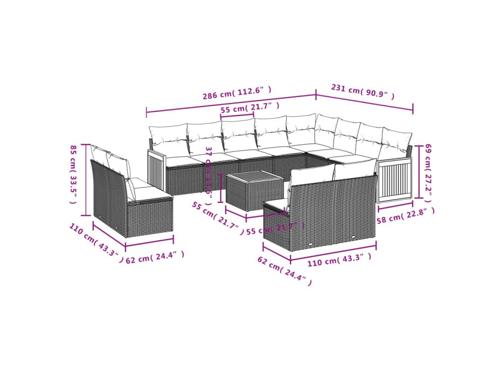 13dílný zahradní sedací souprava s poduškami černý polyratan 3260558