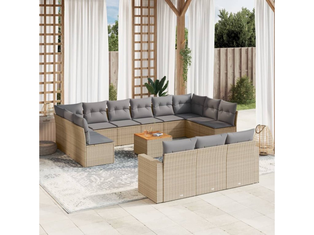 14dílná zahradní sedací souprava a podušky mix béžové polyratan 3256696