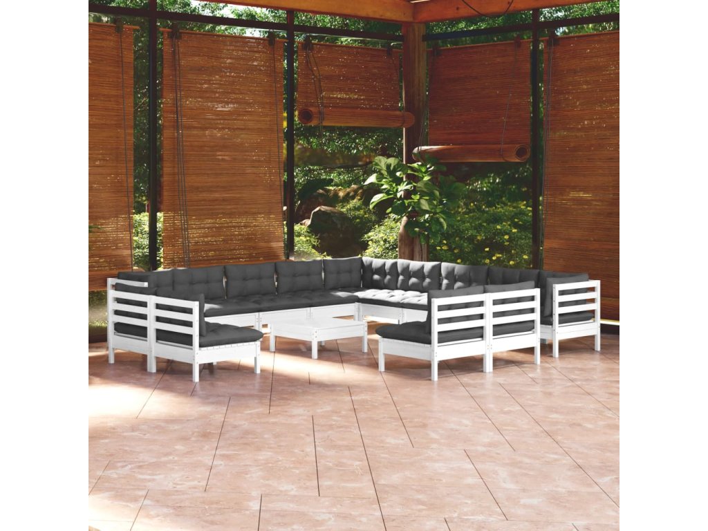 14dílná zahradní sedací souprava podušky bílá masivní borovice 3096894