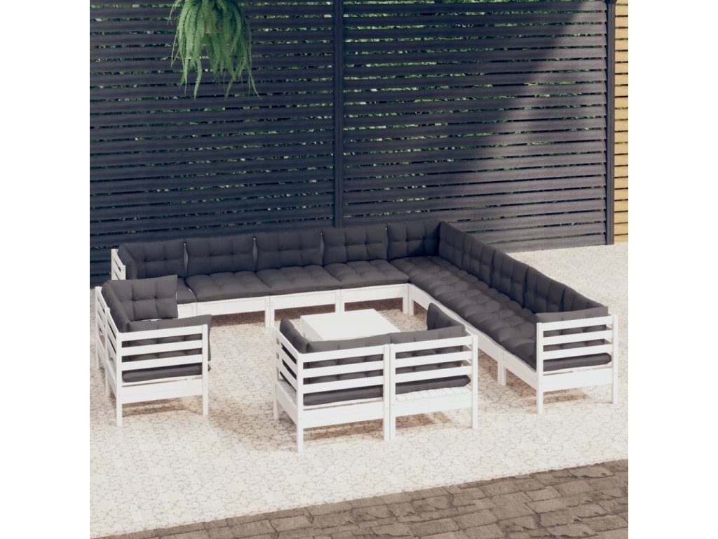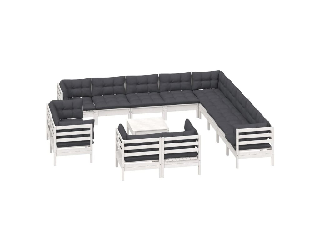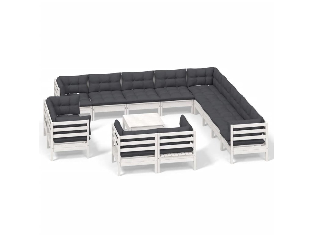 14dílná zahradní sedací souprava podušky bílá masivní borovice 3096966