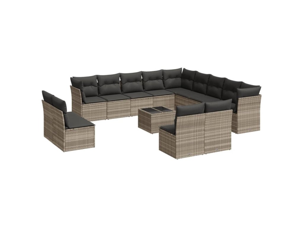 14dílná zahradní sedací souprava podušky světle šedá polyratan 3250341
