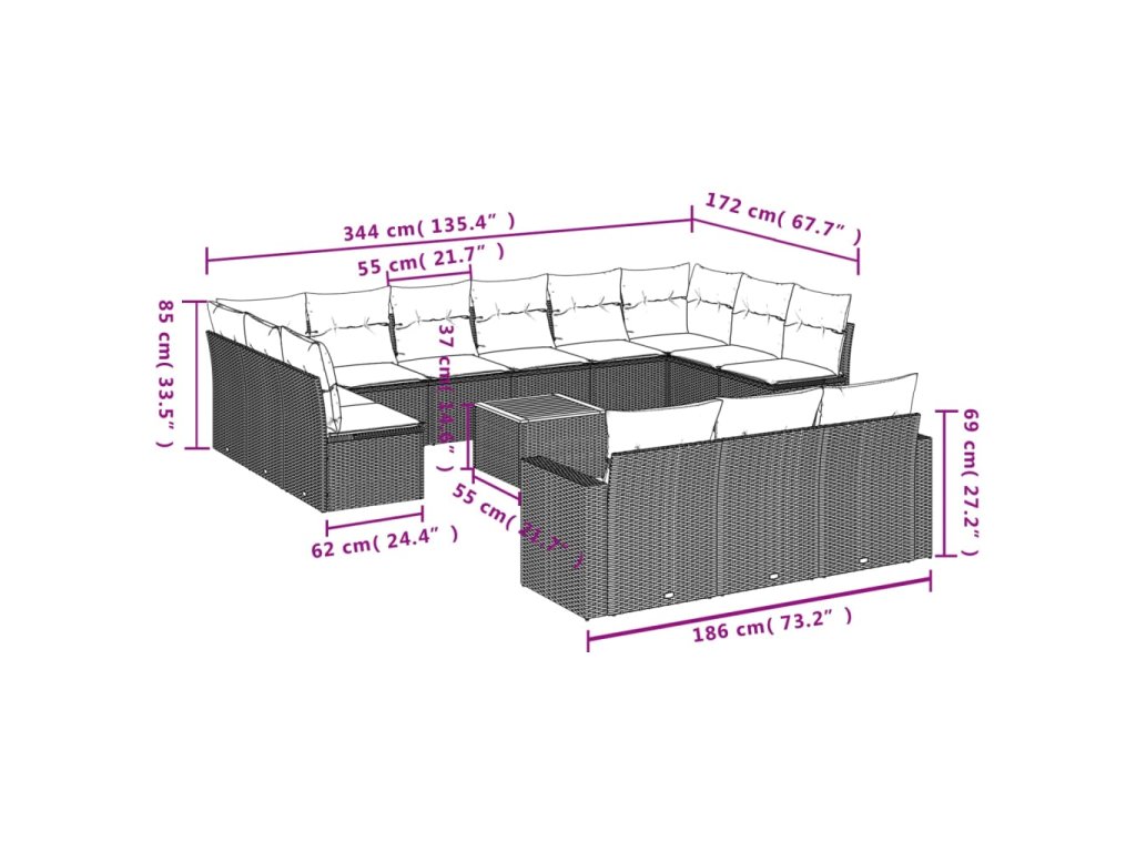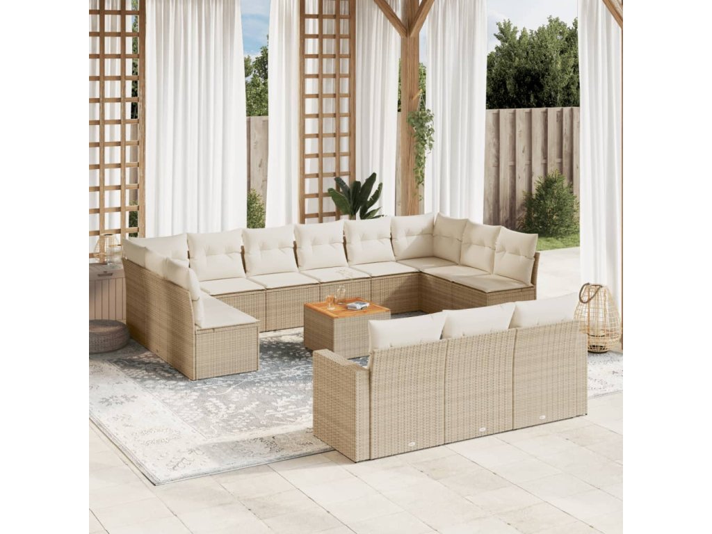 14dílná zahradní sedací souprava s poduškami béžová polyratan 3224364