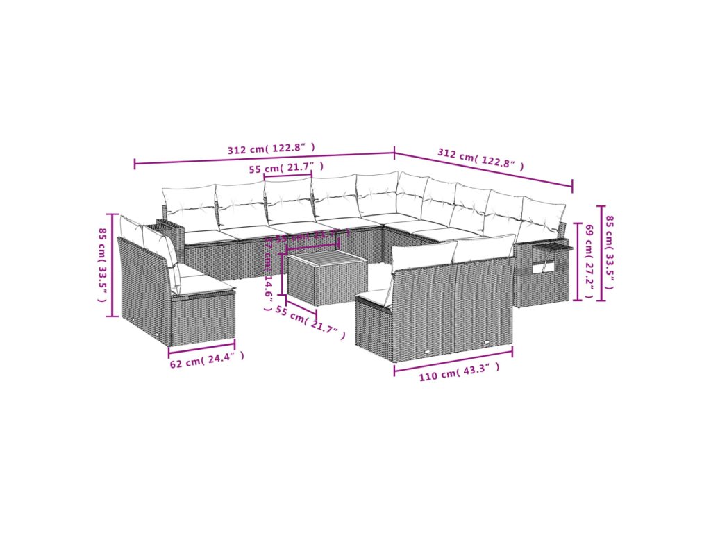 14dílná zahradní sedací souprava s poduškami béžová polyratan 3224819
