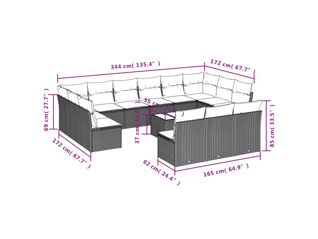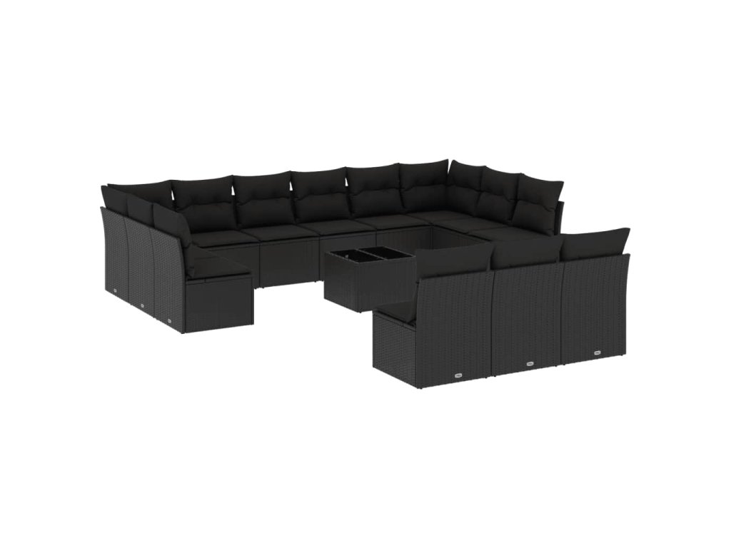 14dílná zahradní sedací souprava s poduškami černá polyratan 3218395