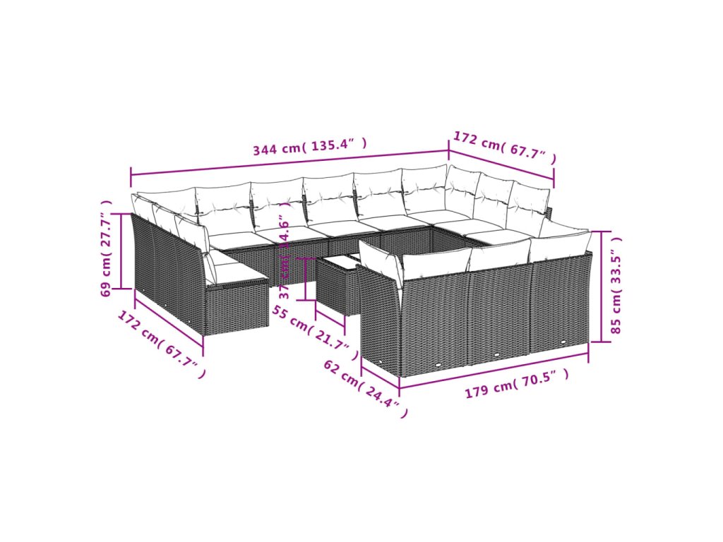 14dílná zahradní sedací souprava s poduškami černá polyratan 3250294