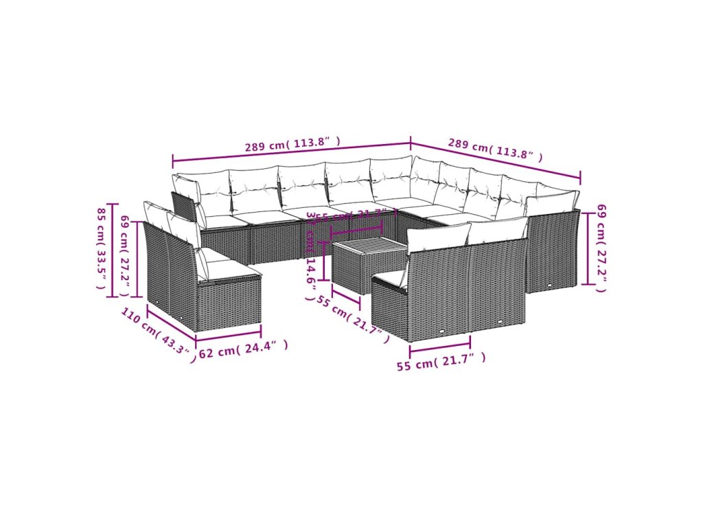 14dílná zahradní sedací souprava s poduškami černá polyratan 3256266