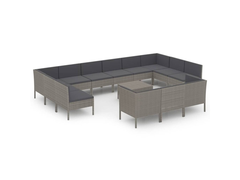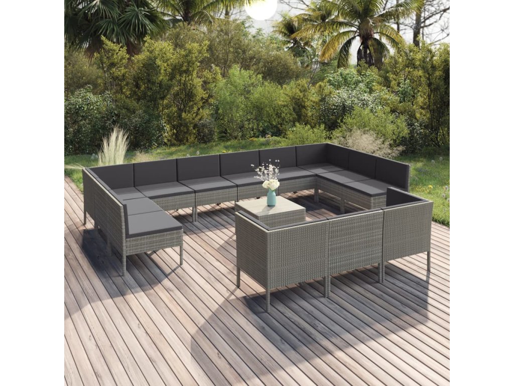 14dílná zahradní sedací souprava s poduškami polyratan šedá 3094630