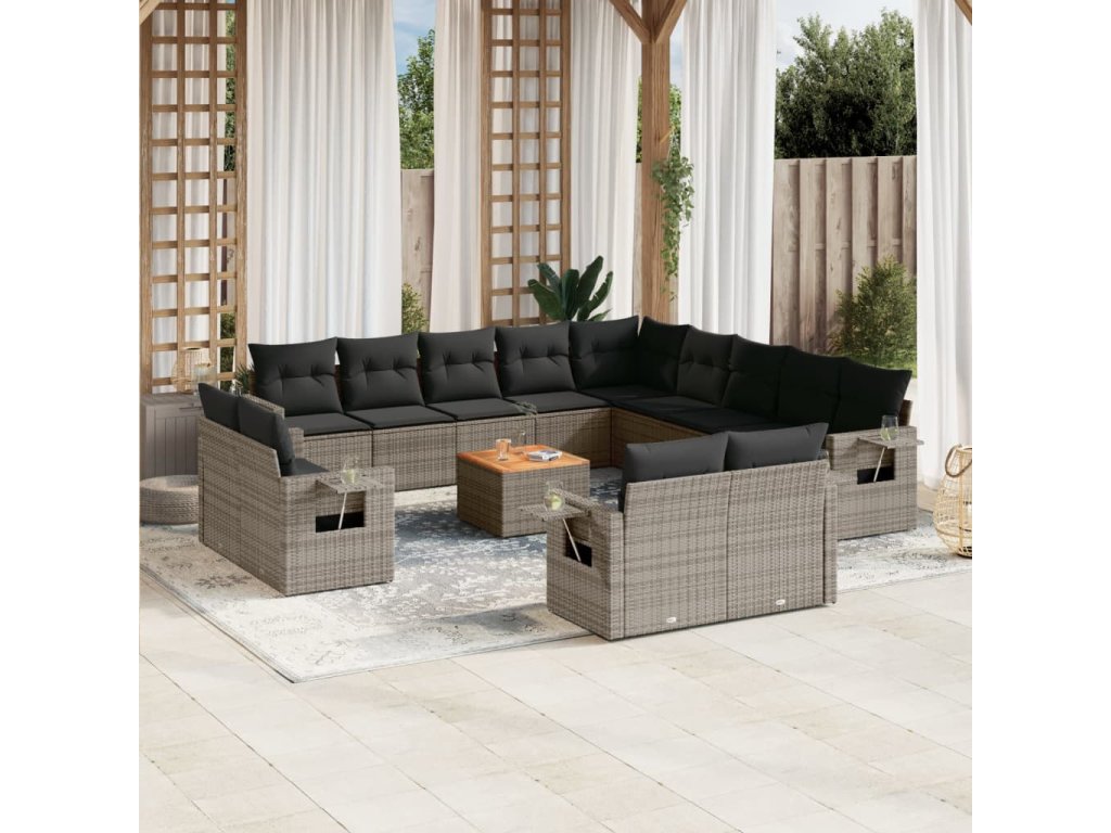 14dílná zahradní sedací souprava s poduškami šedá polyratan 3224842