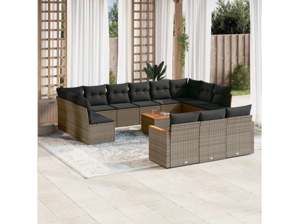14dílná zahradní sedací souprava s poduškami šedá polyratan 3226466