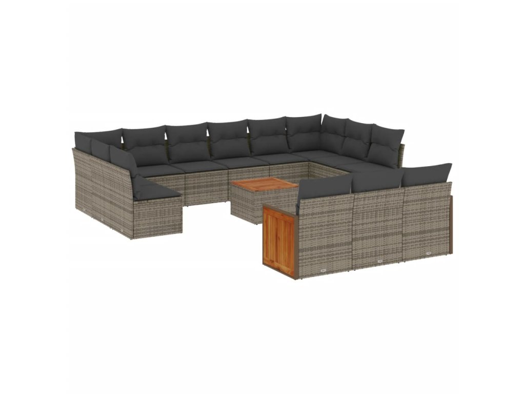 14dílná zahradní sedací souprava s poduškami šedá polyratan 3228146
