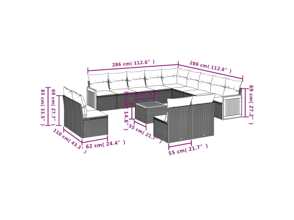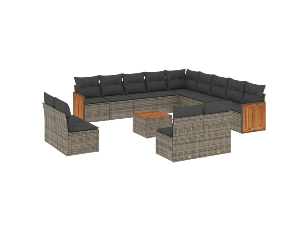 14dílná zahradní sedací souprava s poduškami šedá polyratan 3228174