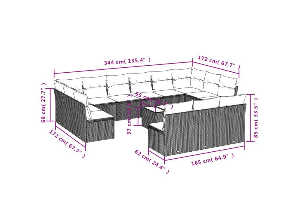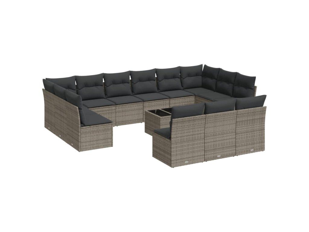 14dílná zahradní sedací souprava s poduškami šedá polyratan 3250239