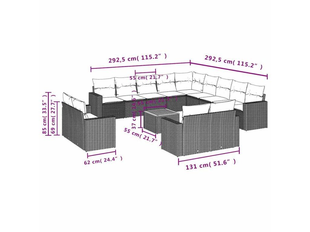 Tato zahradní sedací souprava je dokonalým doplňkem vaší zahrady, terasy nebo dvorku a poskytne vám pohodlné a příjemné místo, kde si můžete povídat s rodinou a přáteli nebo jen tak odpočívat a užívat si pobyt venku.
