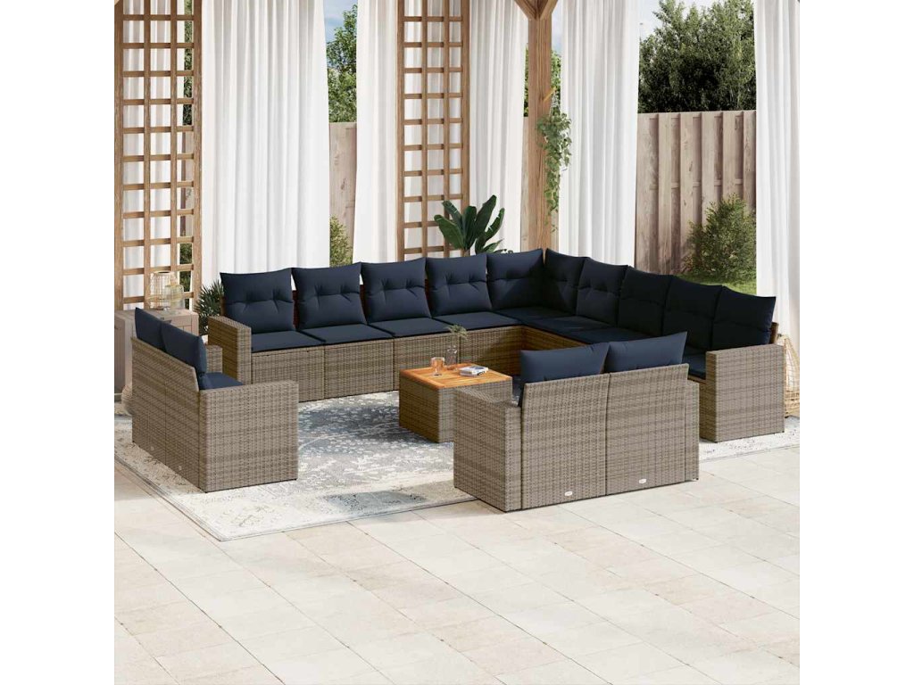 14dílná zahradní sedací souprava s poduškami šedá polyratan 3256733