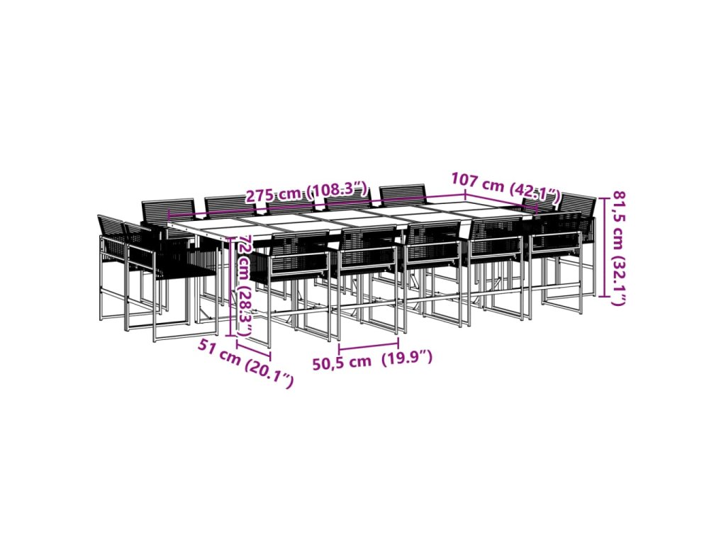 - Robustní a stabilní rám: Ocelový rám s práškovým nástřikem zajišťuje, že zahradní nábytek je pevný a stabilní pro každodenní venkovní použití.
