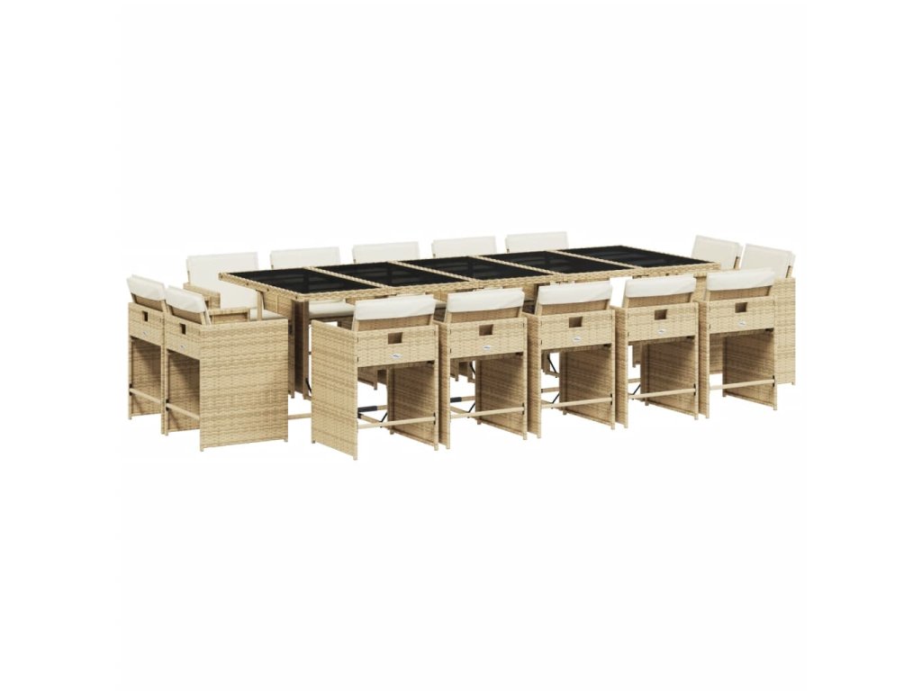 15dílný zahradní jídelní set s poduškami béžový polyratan 3211234