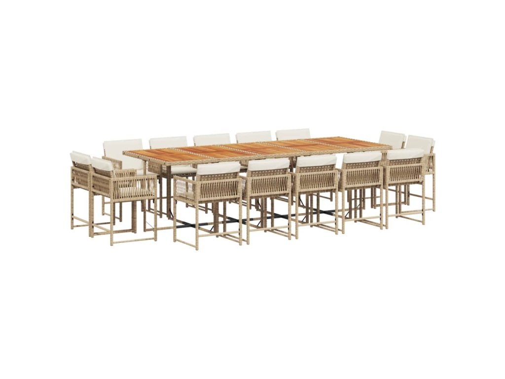 15dílný zahradní jídelní set s poduškami béžový polyratan 3211600