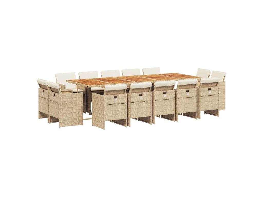 15dílný zahradní jídelní set s poduškami béžový polyratan 3277827