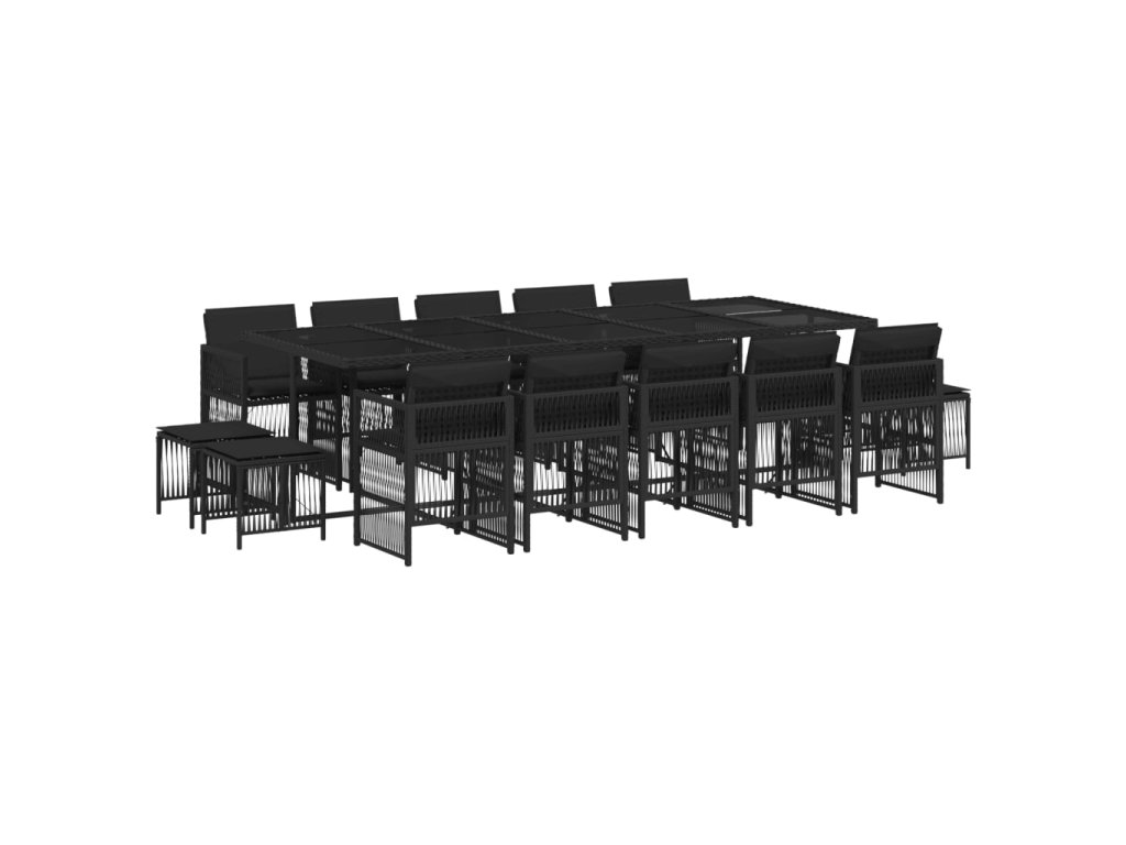 15dílný zahradní jídelní set s poduškami černý polyratan 3210991