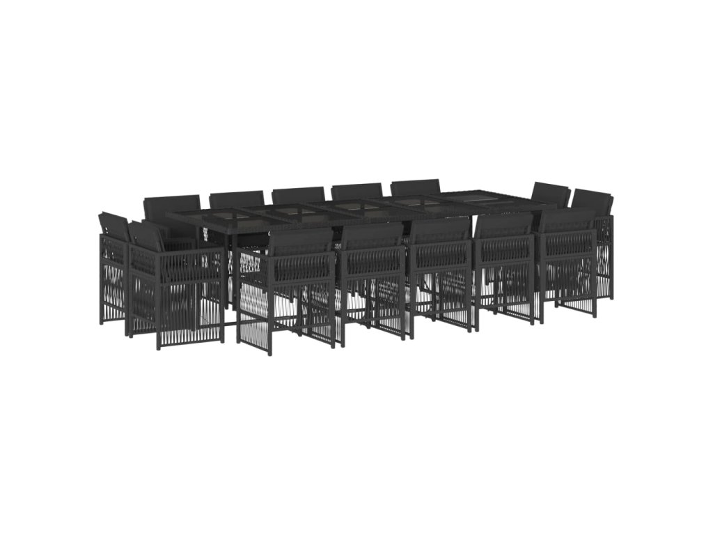 15dílný zahradní jídelní set s poduškami černý polyratan 3211051
