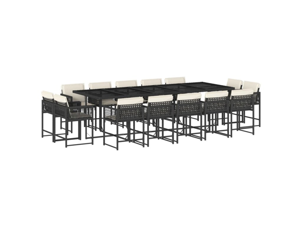 15dílný zahradní jídelní set s poduškami černý polyratan 3211590