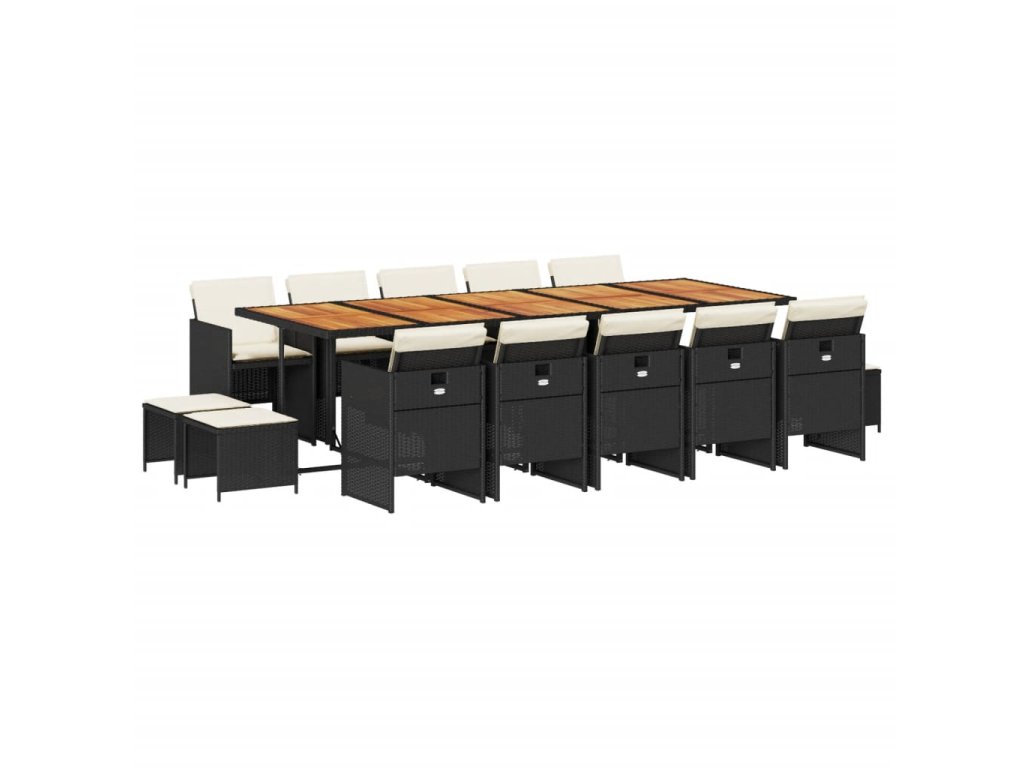 15dílný zahradní jídelní set s poduškami černý polyratan 3277766