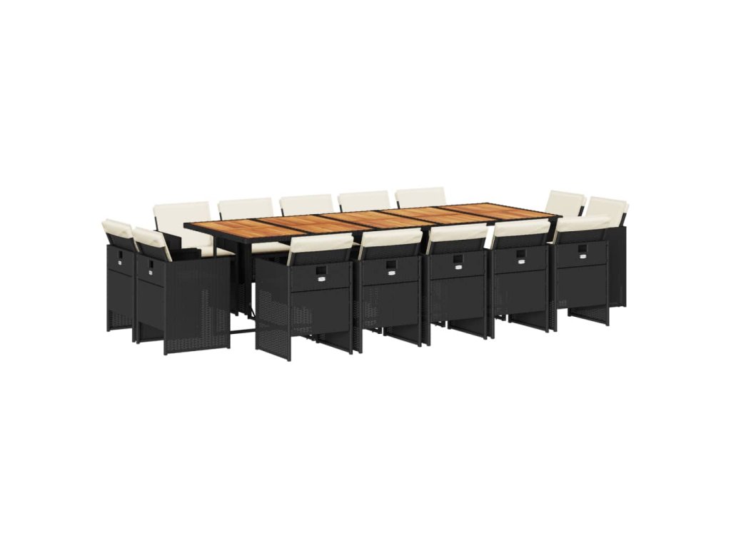 15dílný zahradní jídelní set s poduškami černý polyratan 3277826