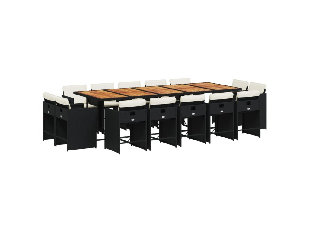 15dílný zahradní jídelní set s poduškami černý polyratan 3278006