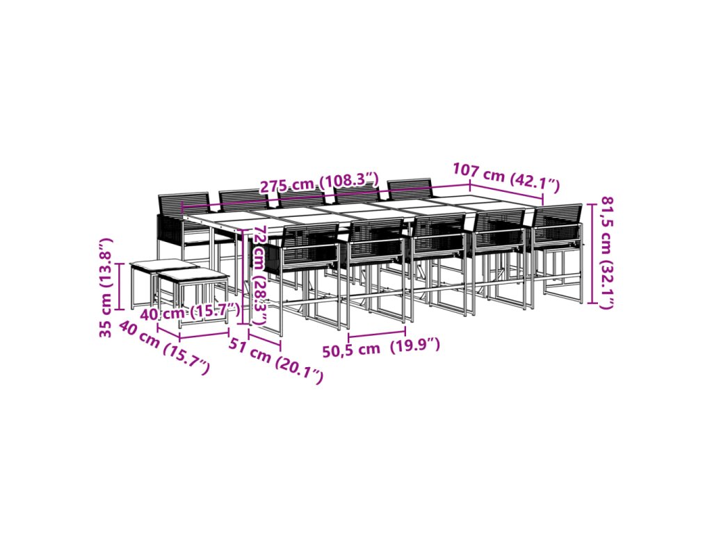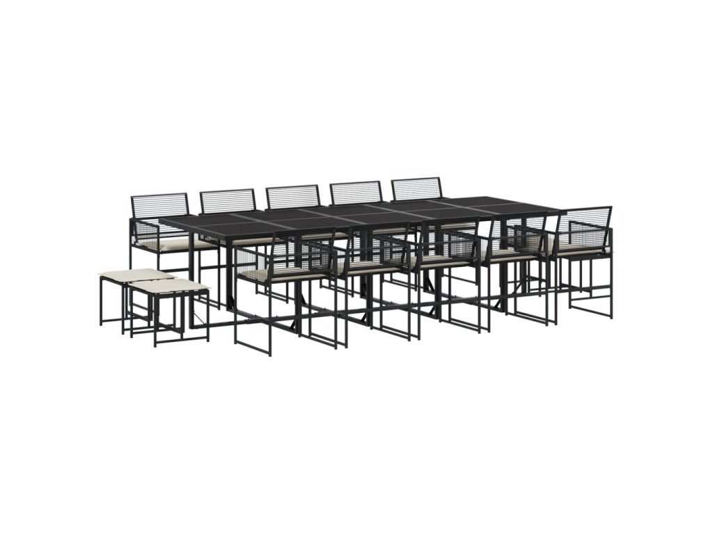 15dílný zahradní jídelní set s poduškami černý polyratan 3295031