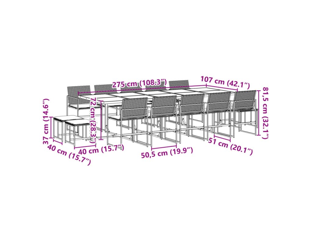 - Robustní a stabilní rám: Ocelový rám s práškovým nástřikem zajišťuje, že zahradní nábytek je pevný a stabilní pro každodenní venkovní použití.