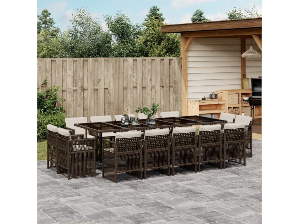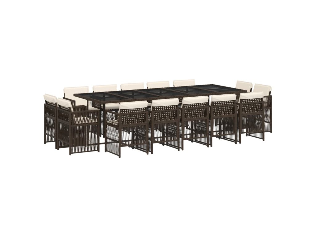 15dílný zahradní jídelní set s poduškami hnědý polyratan 3211053