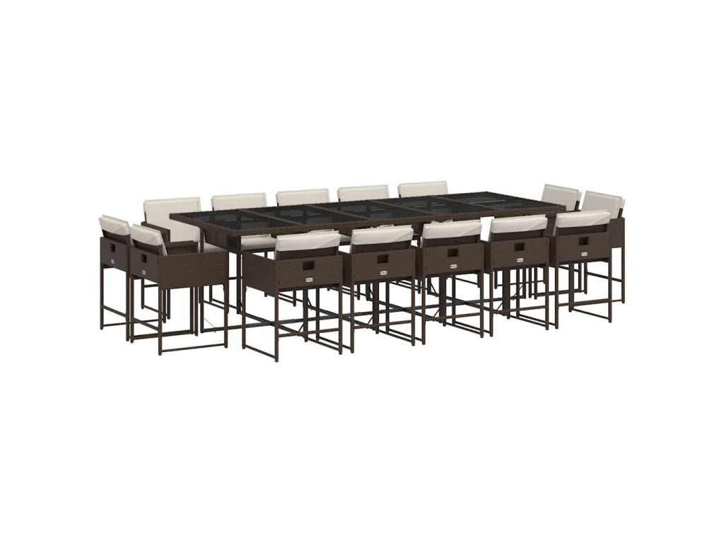 15dílný zahradní jídelní set s poduškami hnědý polyratan 3278180