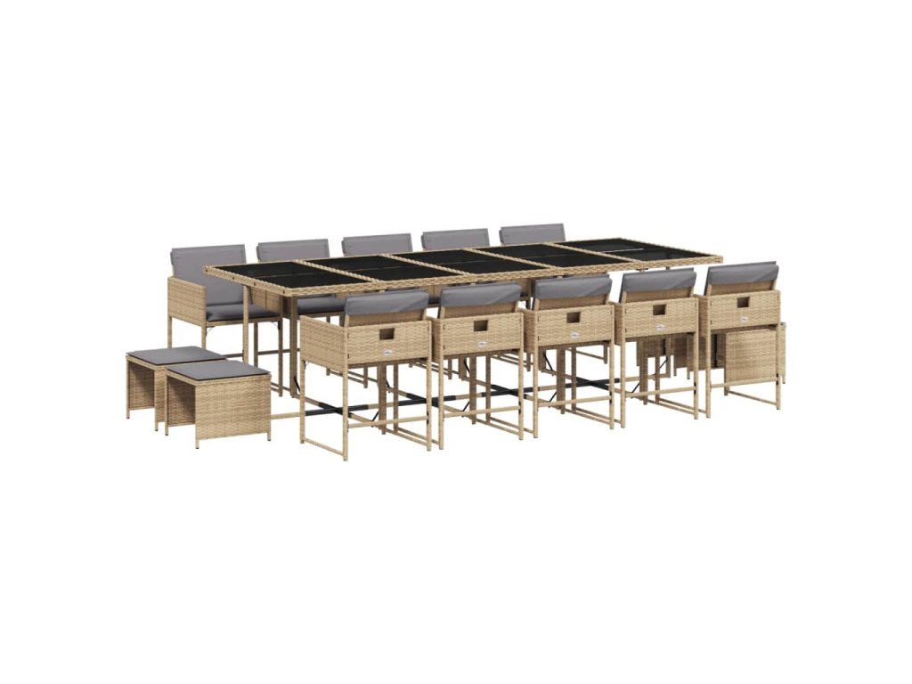 15dílný zahradní jídelní set s poduškami mix béžové polyratan 3211356